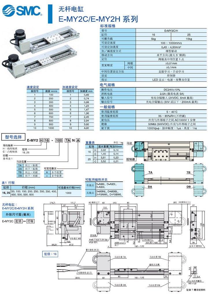E-MY2C/E-MY2H 無缸電缸